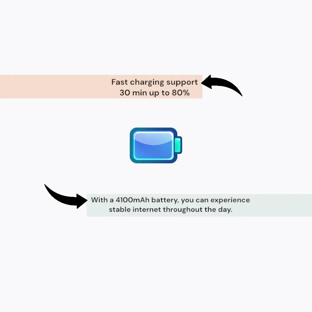 در استفادهی معمول (اتصال ۳ تا ۵ دستگاه به اینترنت 4G) بین ۸ تا ۱۰ ساعت شارژ نگه میداره.