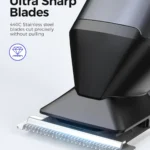 تیغه‌ها مگنتی هستند و به راحتی جدا و نصب می‌شوند؛ برای اصلاح ریش، صورت، بدن، بینی/گوش و موی سر
